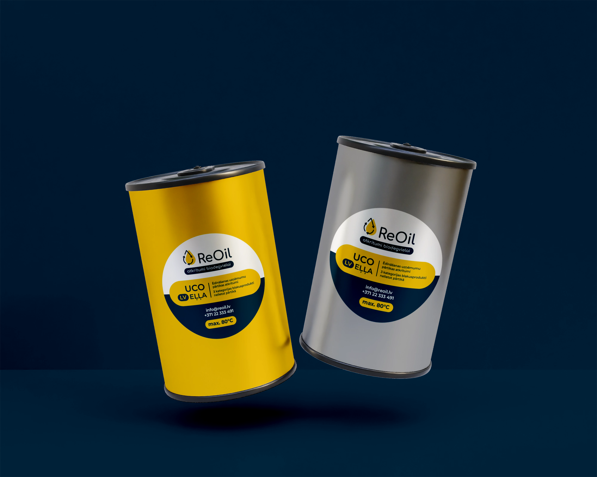 ReOil is a sustainable energy company that transforms waste sunflower oil into biodiesel. We developed a bold and clean visual identity reflecting both the ecological mission and industrial reliability of the brand. The logo combines a stylized oil drop with recycling arrows to symbolize the closed-loop process. We designed a cohesive visual system including color palette, typography, and branded assets – from vehicle graphics and worker uniforms to oil canister labels and product stickers. The bright yellow and deep navy color scheme enhances visibility and memorability, while supporting the brand’s eco-tech positioning.